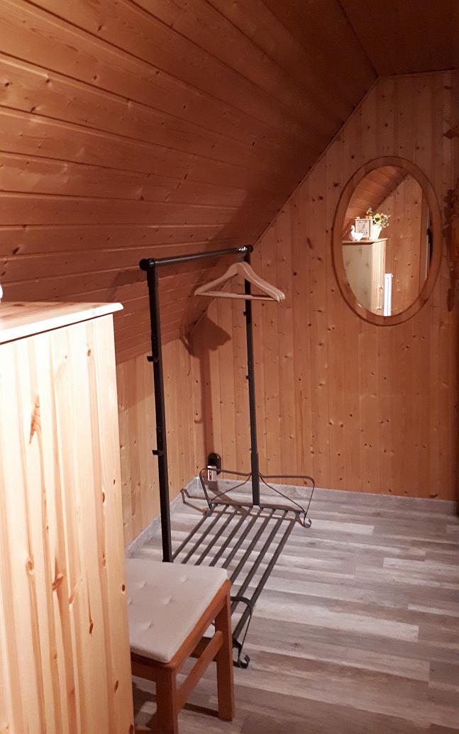 Das Zweibettzimmer befindet sich im Dachgeschoss und liegt direkt an der Treppe.